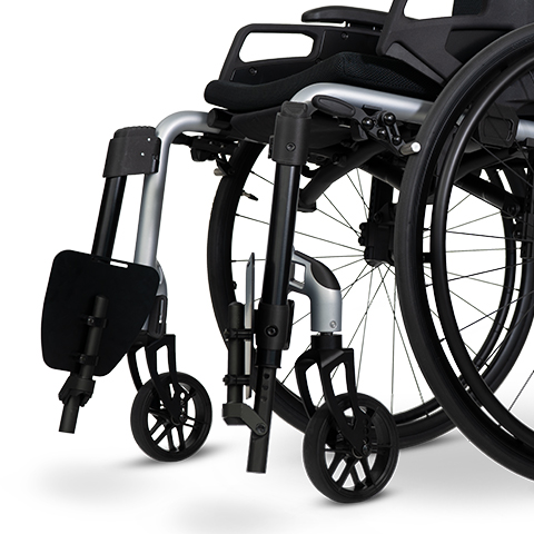 Straight front construction and swingaway/detachable legrests enable the user to move up close to everyday objects and movement therapy devices with ease